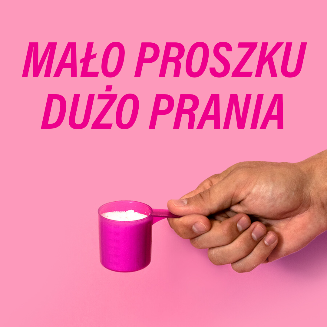 Superskoncentrowany oznacza, że potrzebujesz tylko niewielkiej ilości proszku, aby uzyskać doskonałe efekty. Jedna mała miarka wystarczy na pełne pranie, co czyni go niesamowicie ekonomicznym.